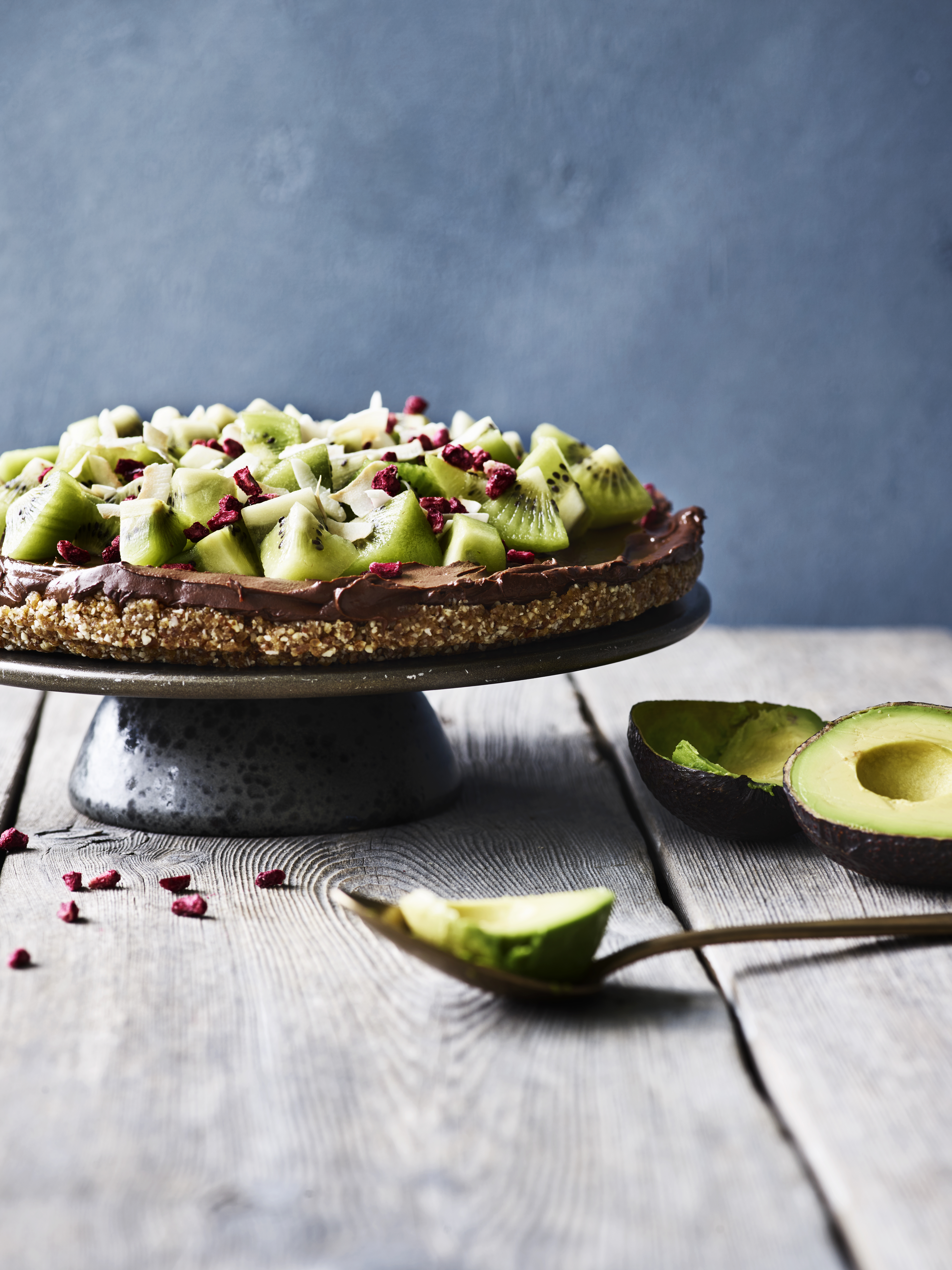 Sekoita täytteen ainesosat tehosekoittimessa tasaiseksi massaksi ja levitä pohjan päälle. Laita kakku vielä jääkaappiin jäähtymään vähintään kahdeksi tunniksi ennen tarjoilua.