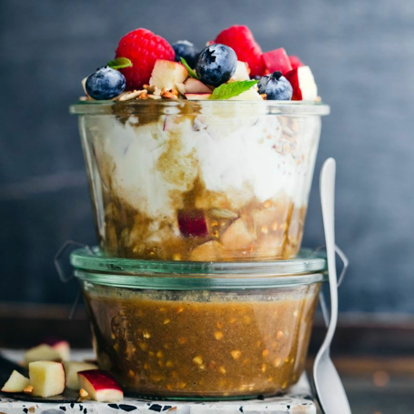 Sekoittamalla tahinia, hunajaa, reilun palan tuoreena raastettua inkivääriä ja kourallisen paahdettua tattaria saat aamiaiselle ehkä maukkaimman lisukkeen. Ainakin meille se maistuu niin jogurtissa, chiavanukkaassa ja puurossa kuin hedelmäsalaatin ja vaniljajäätelön kera. Tarjoiluehdotuksessa kastiketta on lisätty jogurttiin ja päälle on laitettu tuoreita marjoja.