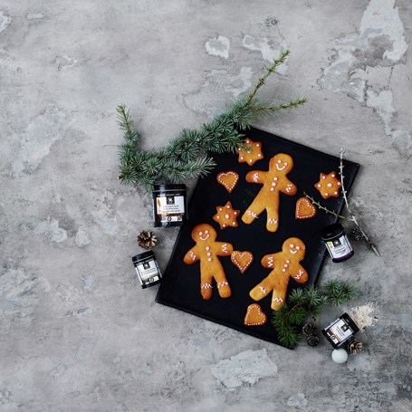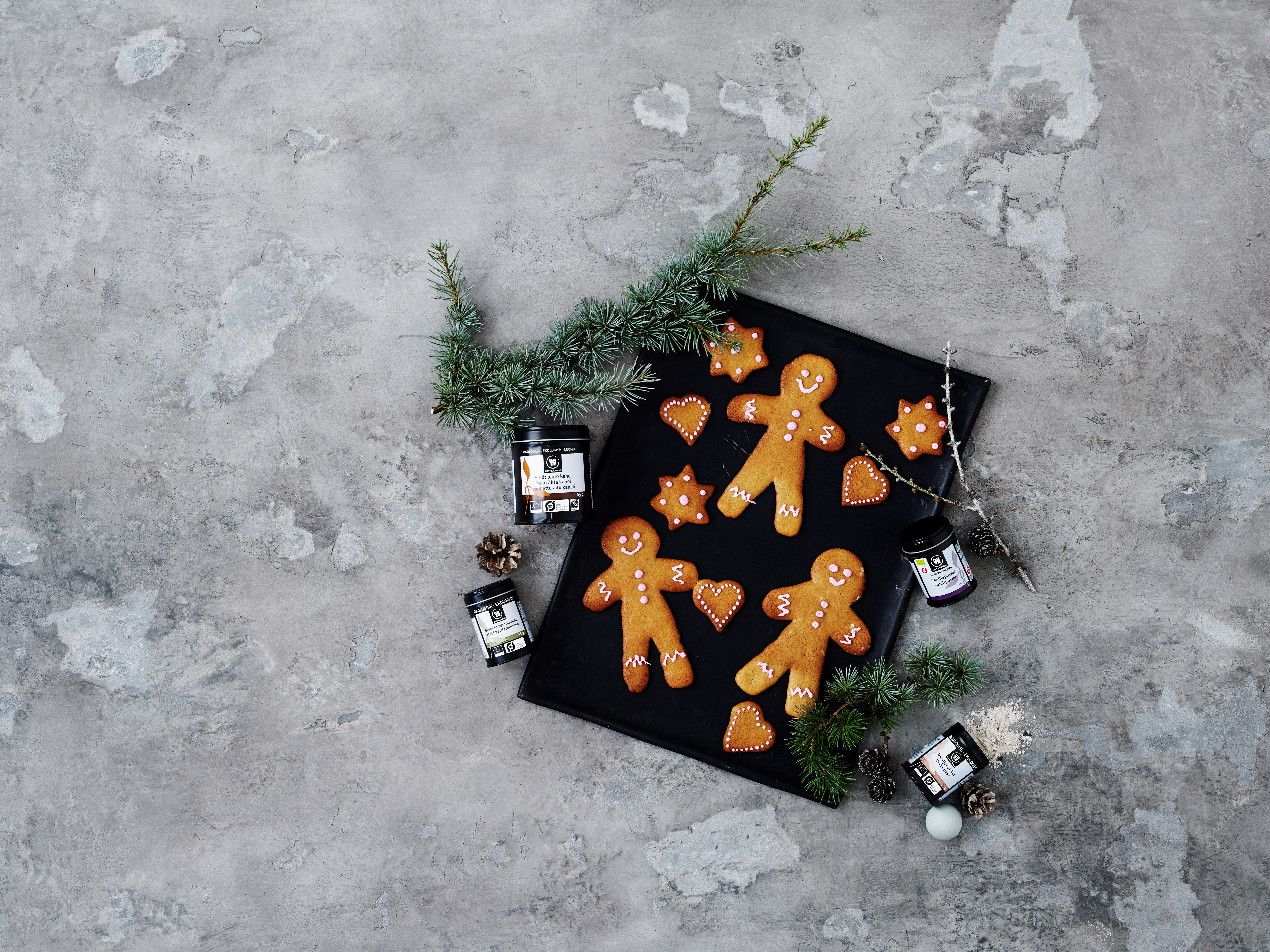 Nosta piparkakkutaikina ajoissa huoneenlämpöön ennen leivontaa, sillä kookosöljy kovettaa taikinan kovaksi. (Voit varovasti pehmentää taikinaa mikrossa miedolla teholla.) Kaulitse taikinaa jauhojen kanssa ohueksi levyksi ja painele piparkakkumuoteilla kuvioita.