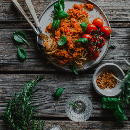 Tarjoile keitetyn pastan ja tuoreen basilikan kera.