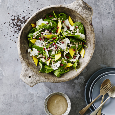 Sekoita kaikki salaatin ainekset keskenään ja lisää kastike.