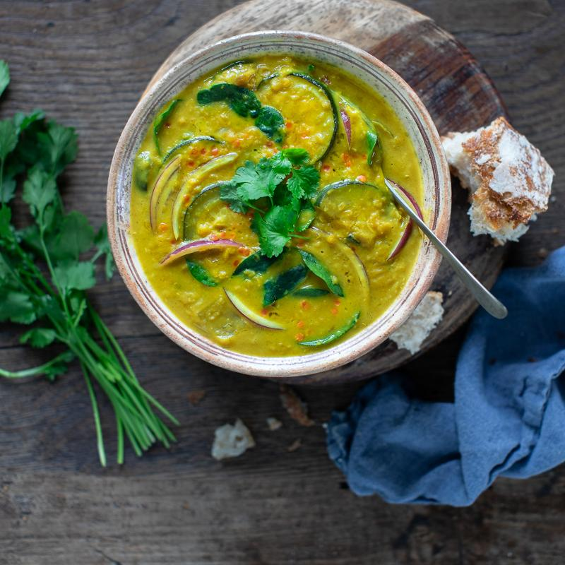 Mausteinen linssikeitto on talviruokien klassikko, joka on helppo ja nopea valmistaa ja maistuu aina yhtä hyvältä. Tavallistakin maukkaamman linssikeiton juju on lisätä siihen muutama aprikoosi tuomaan pehmeää makeutta. Keitto viimeistellään punasipuli-aprikoosi-valkosipuliseoksella, joka paistetaan rapeaksi kookosöljyssä mausteiden kera.