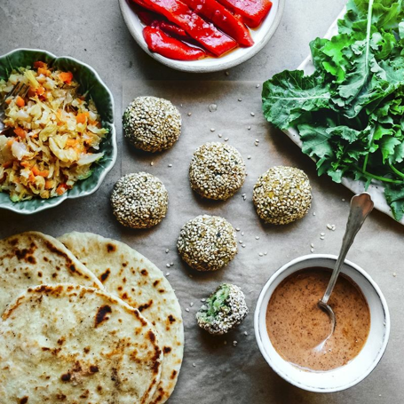 Pannuleipä eli flatbread on nopeasti valmistuva leipä, johon tarvitaan vain neljää raaka-ainetta. Sen täytteeksi sopii melkein mikä tahansa, ja tässä ohjeessa leivät täytetään herkullisilla linssipyöryköillä, mantelikastikkeella ja vihanneksilla.