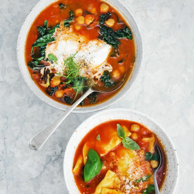 Tässä kätevä vinkki ja resepti vanhemmille, jotka toivovat ruoaksi jotain lasten annoksia jännittävämpää mutta eivät halua kokata kahta eri ruokaa. Keitä lempeä tomaattiliemi ja käytä sitä pohjana, johon lisäät tuorepastaa lasten annoksia varten ja mustakaalia, mausteita ja burrataa aikuisten annoksia varten. Yksi ruokalaji kahteen eri makuun. Todellinen arjen pelastaja!
