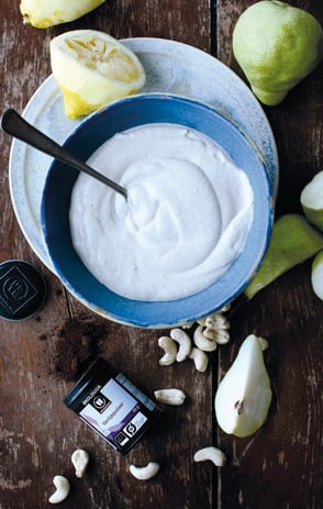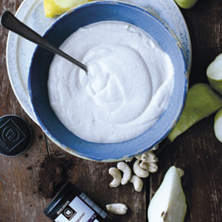 VINKKI: Tämä kreemi muuntuu helposti suklaakreemiksi/kastikkeeksi, jos lisäät siihen kaakaojauhetta. Tai lisää hieman lakritsijauhetta, näin siitä tulee lakritsikreemiä. Lisäämällä siihen basilikaa tai rosmariinia, saat vihreän, makean ja raikkaan jälkiruokakreemin. Jos haluat siitä entistä makeamman, lisää hieman hunajaa tai Agave siirappia.