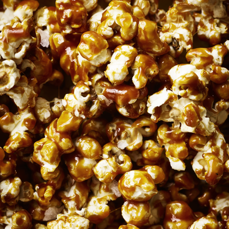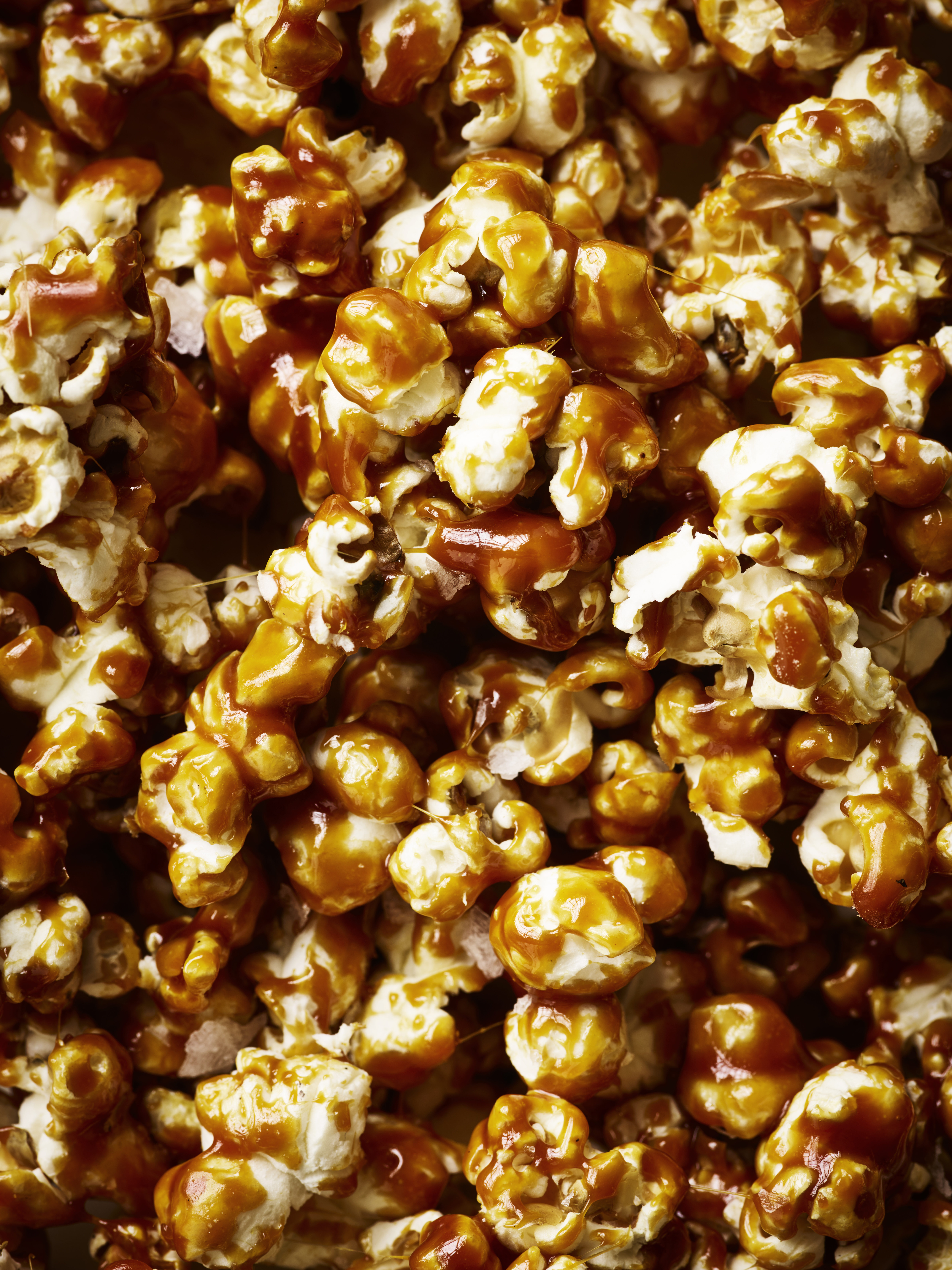 Sulata sokeri pannulla sekoittamatta, mutta keinuttaen pannua varovasti puolelta toiselle. Lisää 50 g voita ja 1 tl. suolaa ja sekoita varovasti, kunnes voi imeytyy. Lisää vähitellen 1/3 popcornia kerrallaan ja käännä ne varovasti ympäri. Levitä ne leivinpaperille kuori niitä hieman ja anna jäähtyä.